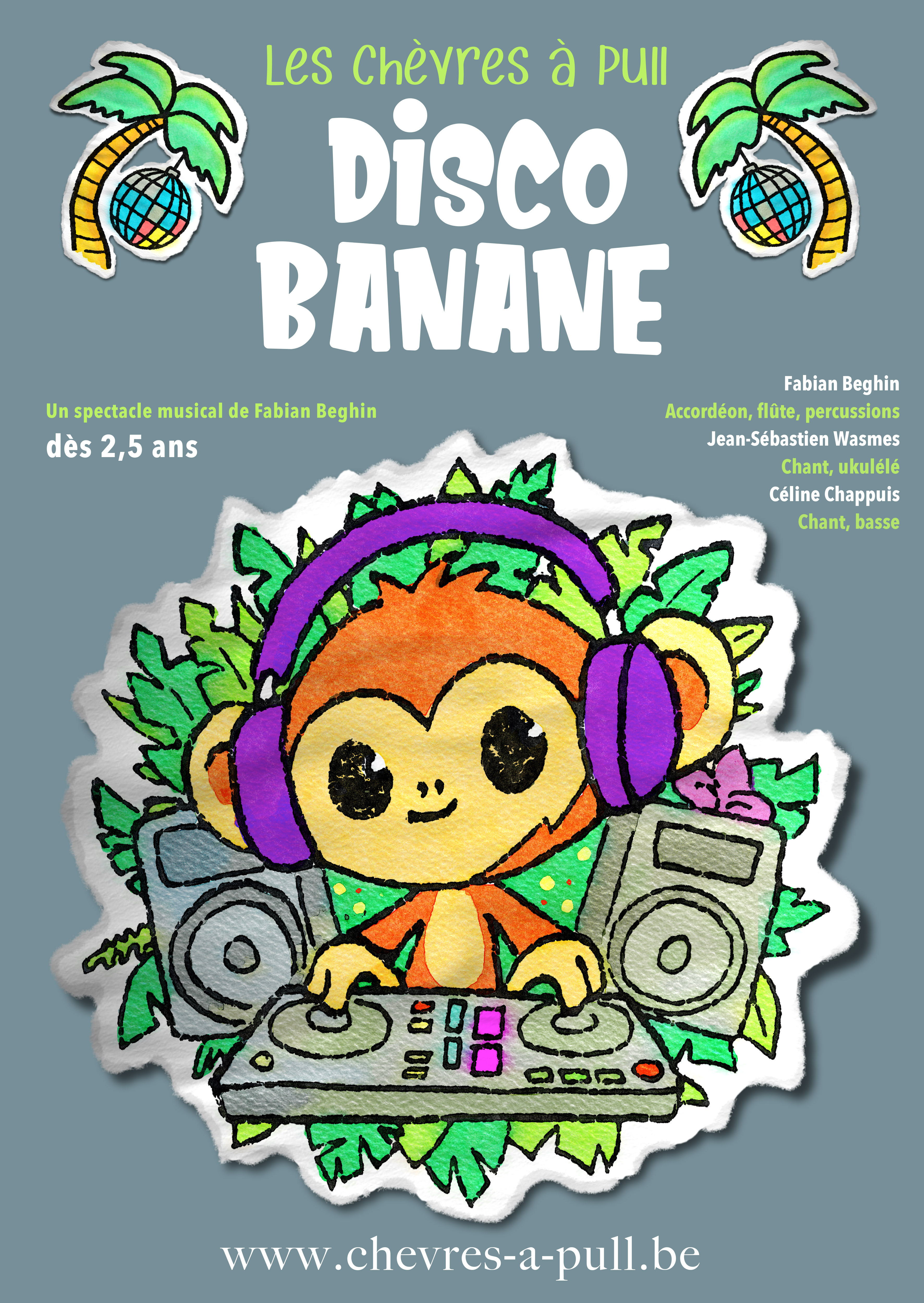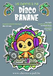 «Disco Banane» est un spectacle reconnu par les tournées Chanson à l’école et par les tournée Art et Vie (Identifiant TARA 91-1, Code Star: 2324-31). Nous proposons également une formule autonome nous permettant de jouer directement dans les écoles.